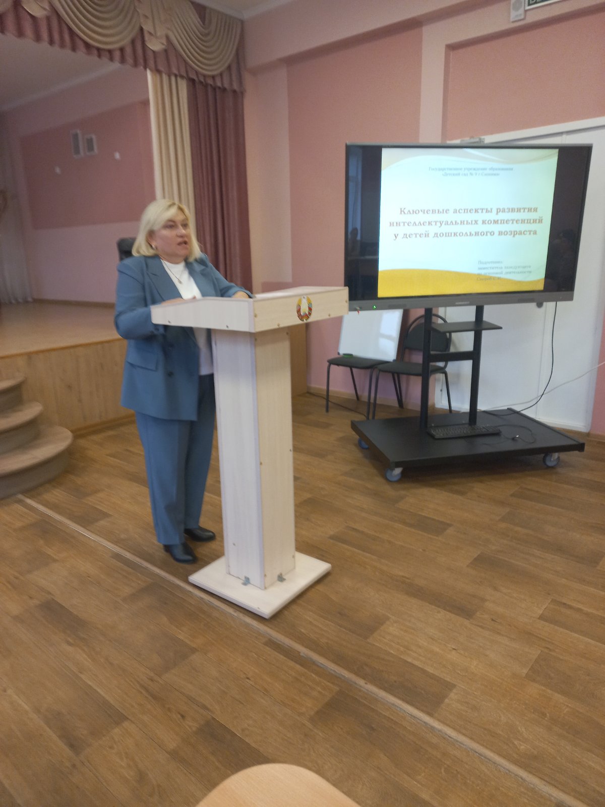 24.10.2025 года заместитель заведующего по основной деятельности Свороб Светлана Ивановна приняла участие в постоянно действующем семинаре детский сад-начальная школа, который проходил на базе ГУО " Средняя школа № 4 имени П.И.Батова г.Слонима". Светлана Ивановна представила опыт работы нашего учреждения по развитию интеллектуальных способностей детей дошкольного возраста.