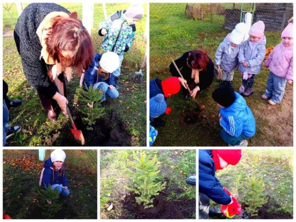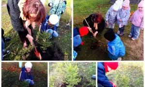 Воспитанники специальной группы совместно с воспитателем Левкевич Н.Л. 5 ноября посадили ели на территории ГУО "Детский сад N 9 г.Слонима. Дети с интересом наблюдали за процессом подготовки к посадке деревьев и вместе посадили их.