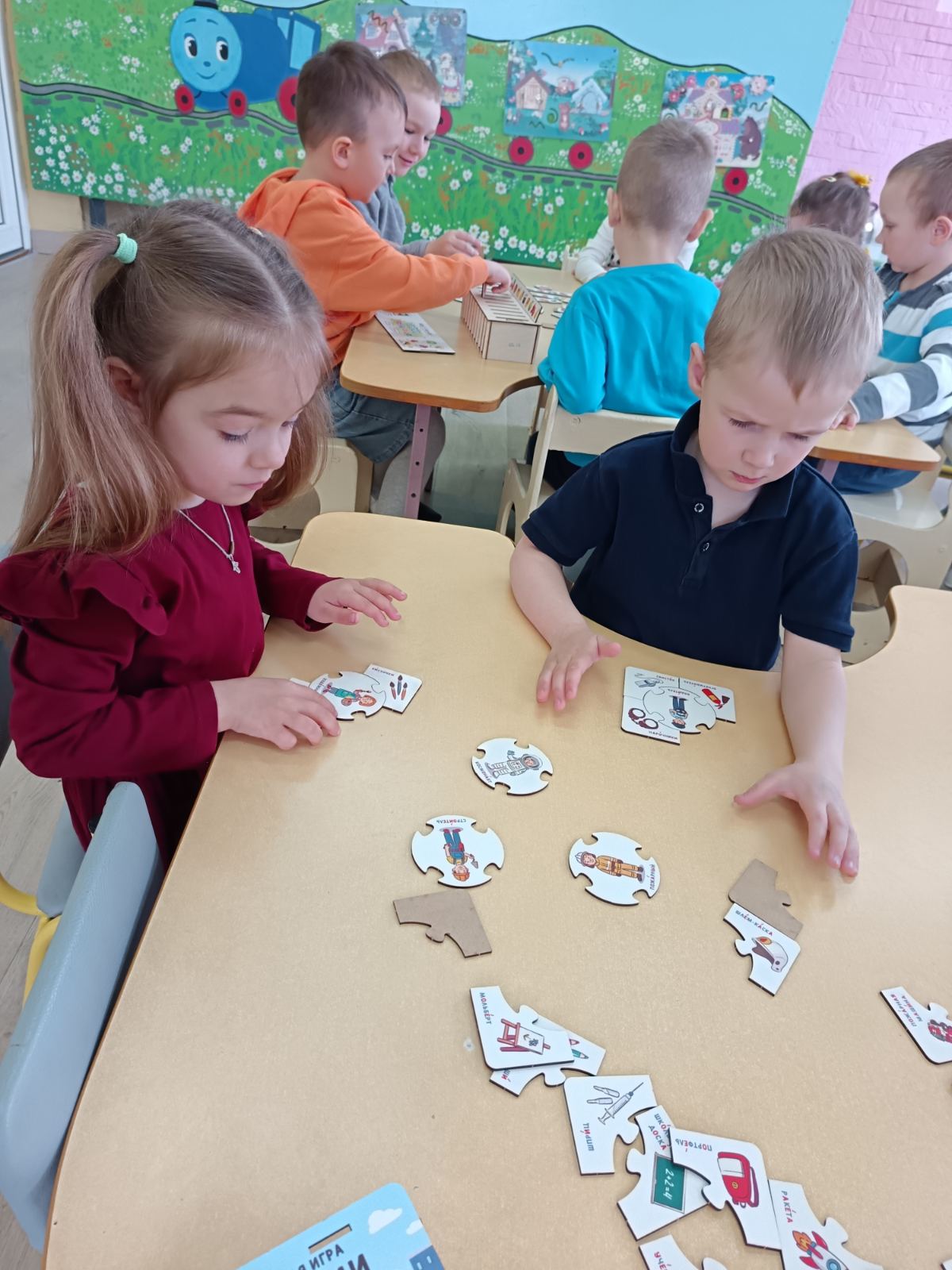 Воспитанники 2 младшей группы используя пазлы «Профессии» познакомились с различными видами трудовой деятельности взрослых. В ходе выполнения заданий в игре «Найди соответствие» развивали внимание и логическое мышление. Особое внимание было уделено дидактическим играм «Подбери пару», "Сортировка". В процессе данных игр дети устанавливали связи между предметами, закрепляли умение классифицировать предметы по заданным признакам.