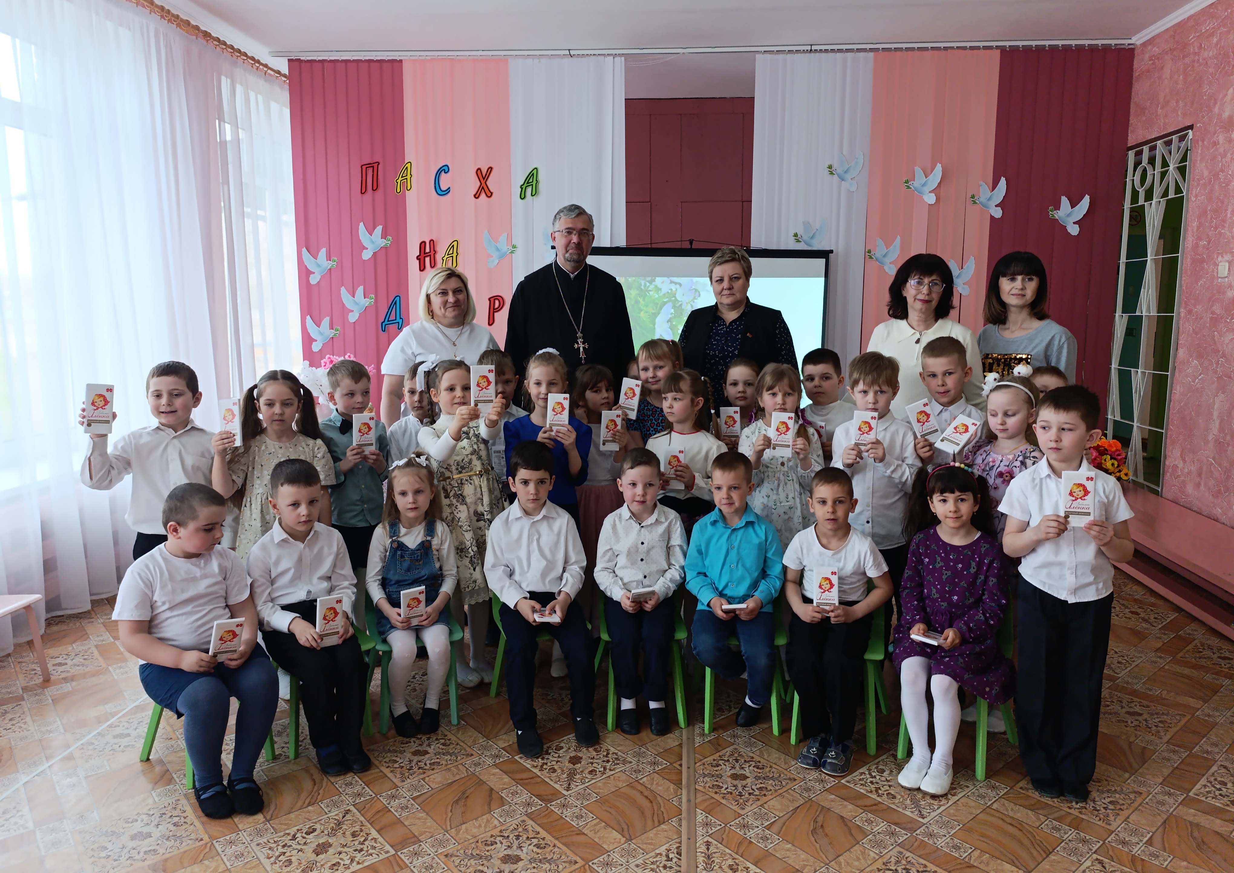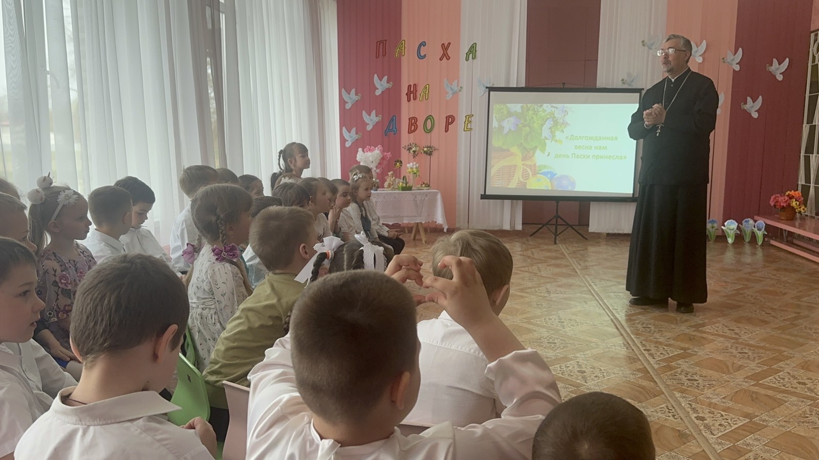На празднике присутствовал благочинный Слонимского церковного округа протоиерей Вадим Петлицкий. Отец Вадим поздравил всех с праздником, рассказал, что Пасха - это время добрых дел, помощи окружающим, подарил детям сладкие подарки.